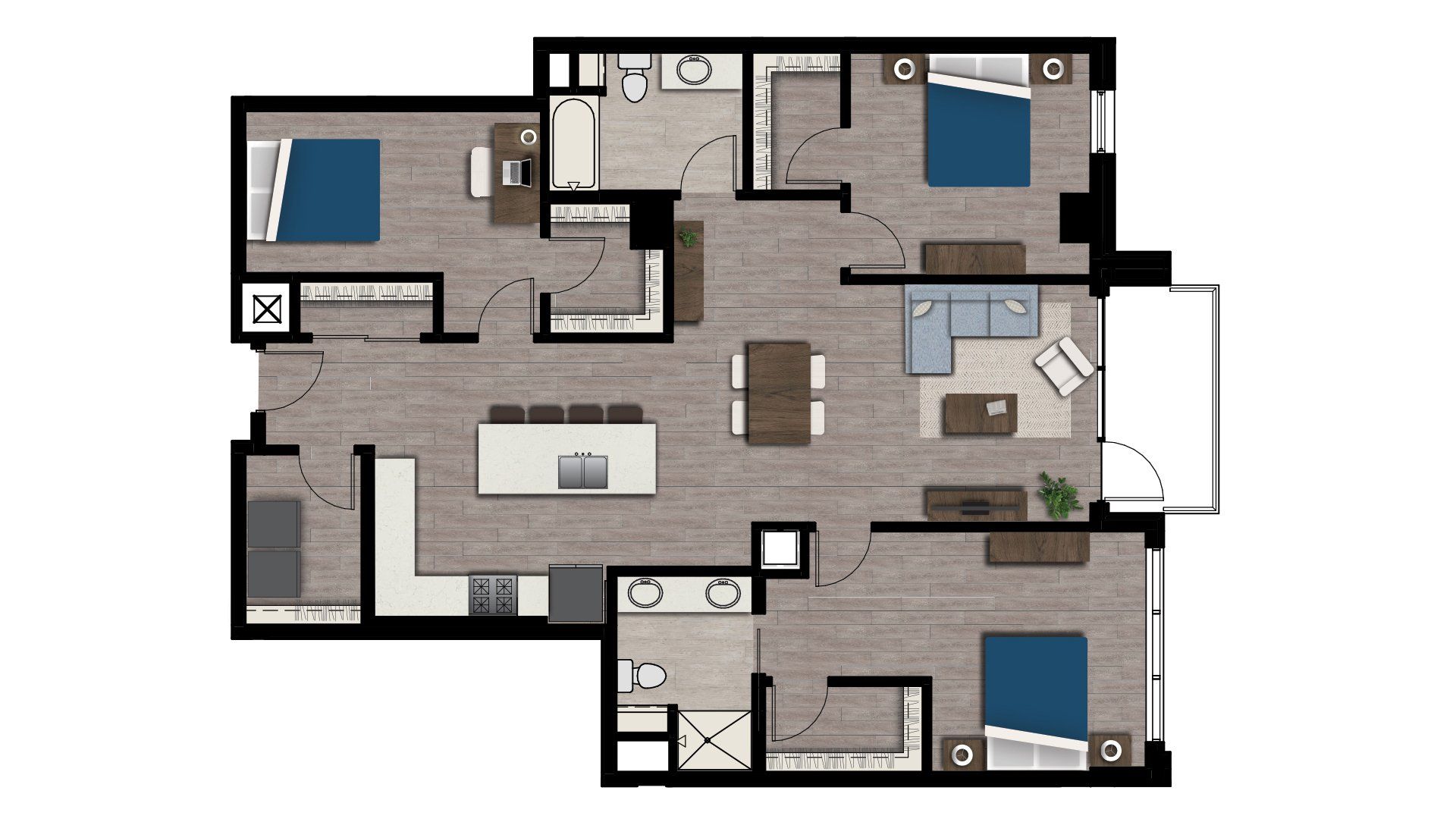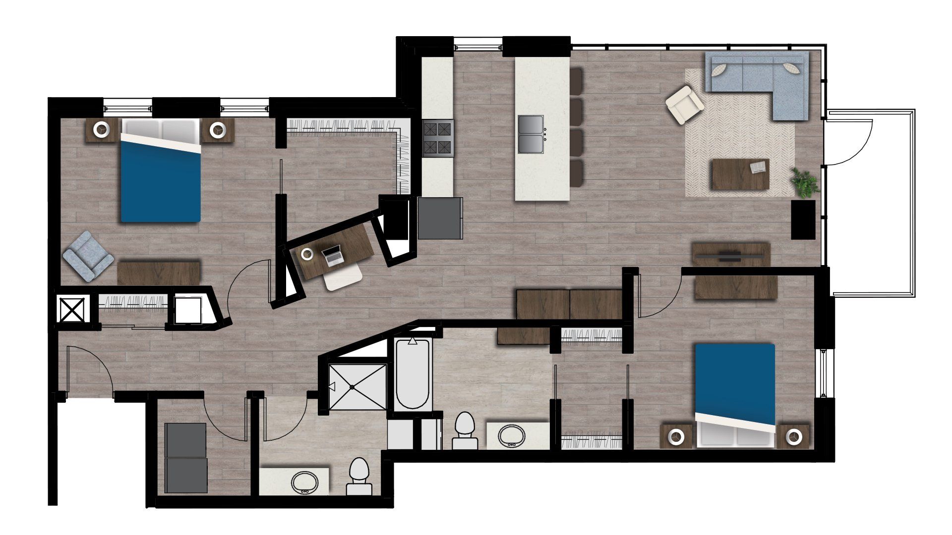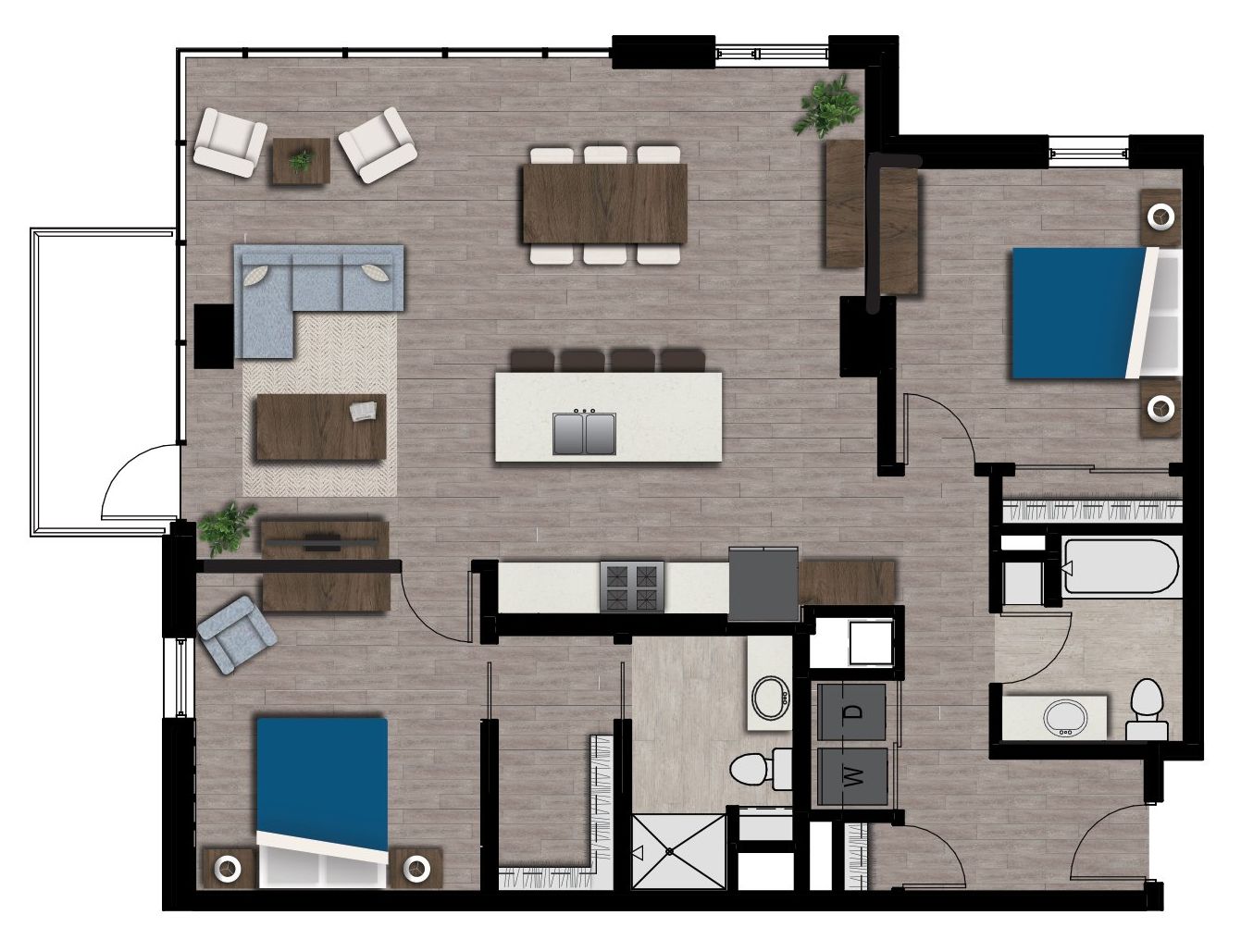 Offering apartment sizes ranging from studios to three bedrooms in a wide variety of floor plan styles.